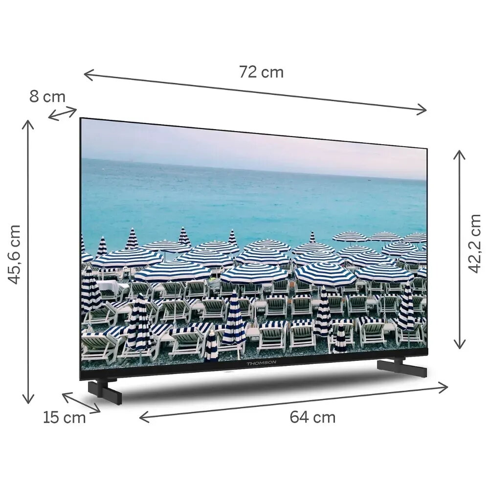 | Feature | Detail | | :--- | :--- | | **Display** | 32" (81 cm) Direct LED, HD Ready (1366 x 768 pixels), 60 Hz | | **TV Type** | Easy TV (Basic Television / Non-Smart TV) | | **Processor** | Quad-Core MSD3663LSA-SW | | **Audio** | 16W (2 x 8W) featuring Dolby Audio and Dolby Digital 2.0 | | **Tuner** | Digital Triple Tuner: DVB-T/T2 (Antenna), DVB-C (Cable), DVB-S/S2 (Satellite) / CI+ Slot | | **Wired Connections** | 3x HDMI 1.4 (ARC/CEC Support), 2x USB 2.0, Coaxial Out (S/PDIF), AV In | | **Headphone Output**| Yes (Standard 3.5mm Jack) | | **USB Media Player**| Yes (Supports playback of local photos, audio, and video) | | **Dimensions with Stand** | 71.9 x 45.6 x 15.1 cm | | **Dimensions w/o Stand** | 71.9 x 42.3 x 8.2 cm | | **VESA (Wall Mount)** | 100 x 100 mm / Weight: 3.35 kg (7.38 lbs) with stand | | **Energy Efficiency** | Class E (SDR Consumption: 26 kWh/1000h) |
