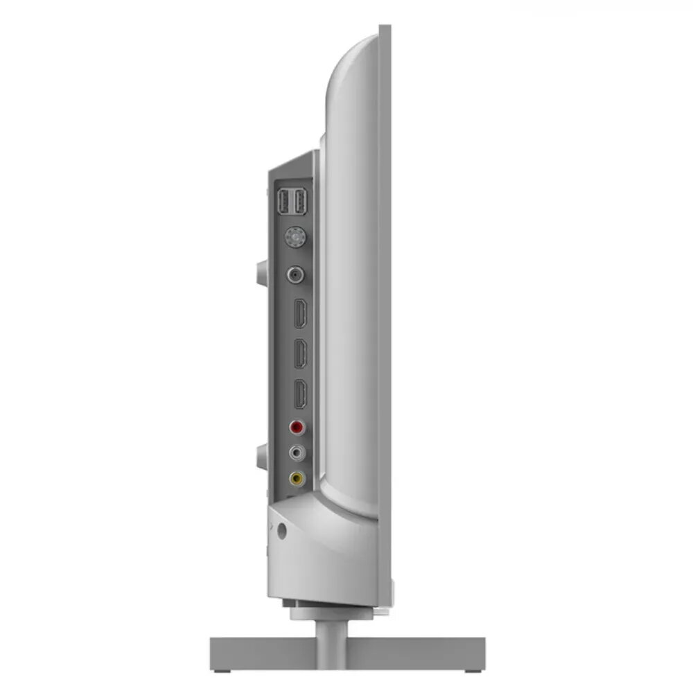 | Feature | Detail | | :--- | :--- | | **Display** | 24" (60 cm) Direct LED, HD Ready (1366 x 768 pixels), 60 Hz | | **Picture Technology** | HDR10, 8-bit color depth (16 million colors) | | **Dual Power Options** | Standard AC (100-240V) and **12V Adapter Included** | | **Operating System** | Google TV (Compatible with Google Assistant and Chromecast) | | **Audio** | 2 x 3W featuring Dolby Audio and DTS Digital Surround | | **Tuner** | Digital Triple Tuner: DVB-T/T2 (Antenna), DVB-C (Cable), DVB-S/S2 (Satellite) | | **Wired Connections** | 3x HDMI 1.4 (ARC on HDMI 1), 2x USB 2.0, AV In, Optical Out, RJ-45 LAN | | **Wireless Connectivity**| Dual Band Wi-Fi (2.4GHz + 5GHz) and Bluetooth 5.1 | | **Design & Accessories** | White color, Frameless, Adjustable feet, Backlit remote | | **Dimensions with Stand**| 53.5 x 35.3 x 15.1 cm | | **Dimensions w/o Stand** | 53.5 x 31.8 x 7.5 cm | | **VESA & Weight** | 100 x 100 mm / 2.4 kg (5.3 lbs) |