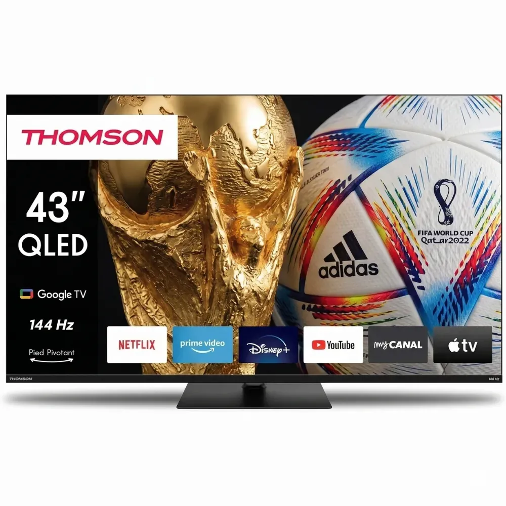 PAGOWhether you're enjoying fast-paced action movies or getting the most out of your next-gen console, the Thomson 43QG7C14 is designed to impress. Its compact 43-inch (109 cm) footprint makes it ideal for bedrooms, cozy living rooms, or advanced gaming setups.