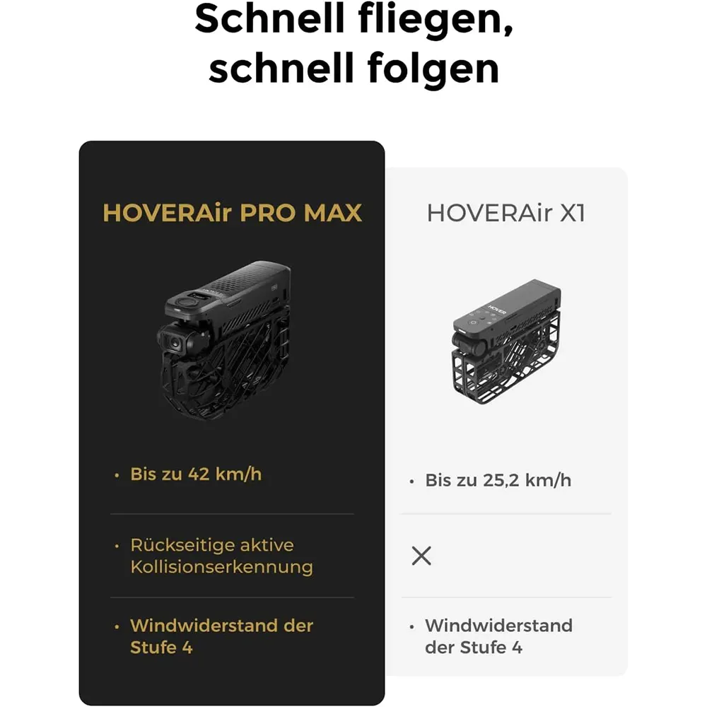 Explore new heights with the HOVERAir X1 PROMAX Retail Combo: autonomous folding flying camera with built-in camera up to 8K@30fps, top speed of 42 km/h and more than 10 automatic flight modes thanks to OmniTerrain technology. Its "SmoothCapture 2.0" stabilization, 1/1.3″ sensor and 64 GB internal memory allow you to capture your adventures effortlessly. Compact, powerful and designed for content creators and extreme sports.