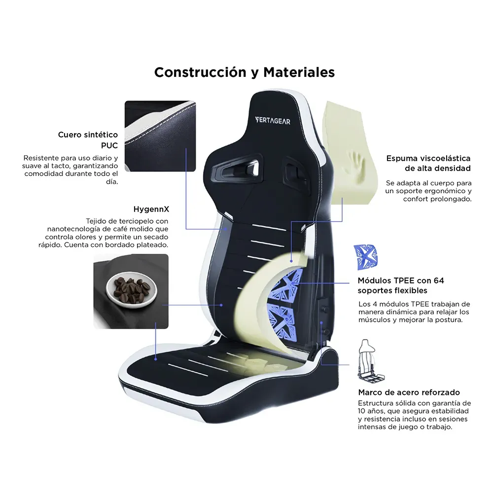 Recommended for tall gamers, streamers, remote professionals or any user who spends long hours sitting. Its XL size and adaptive materials guarantee a premium experience in every use.
