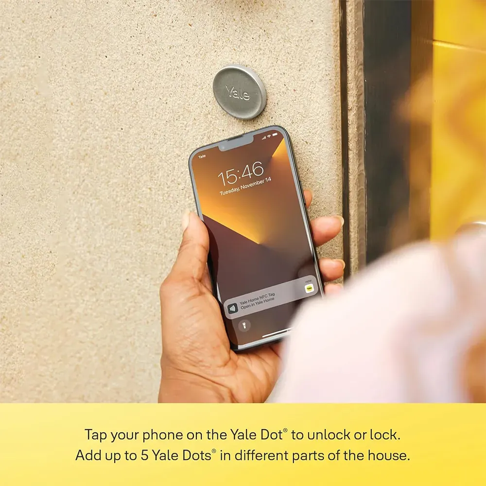 Convenience is redefined with the new included Yale Dot. Simply bring your smartphone close to the Dot to unlock the door without even opening the app. Plus, thanks to your phone's GPS and Auto Unlock feature, the lock will detect when you get home and unlock the door for you - perfect for when you arrive loaded down with groceries. You can also program automatic locking times at night or when you leave for work.