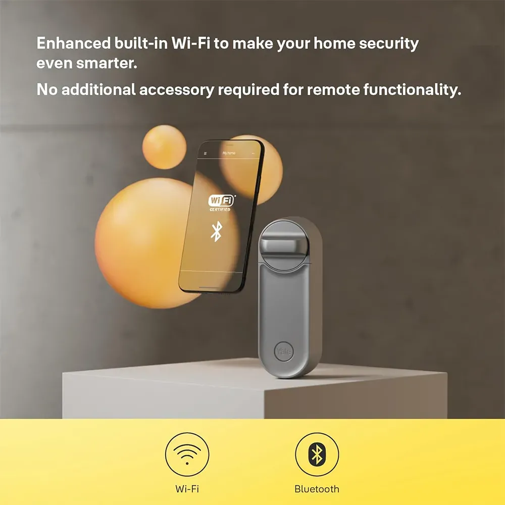 Unlike its predecessor, the Linus L2 features integrated Wi-Fi. This means that you no longer need to purchase a separate bridge to enjoy remote functionality. You can lock, unlock and check the status of your door from anywhere in the world directly from the Yale Home app. It is also fully compatible with Matter, the new universal connectivity standard for smart homes.