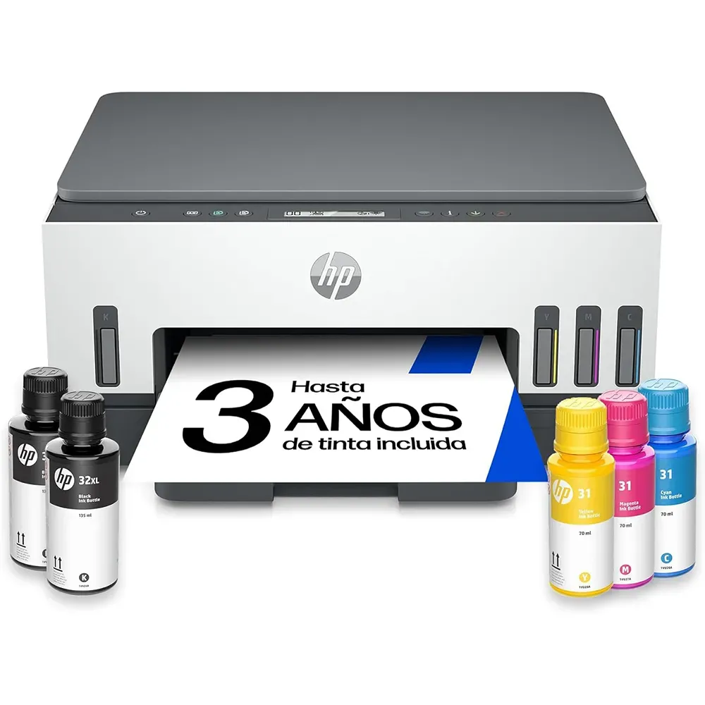 The HP Smart Tank 7005 eliminates the frustration of running out of ink. Its high-capacity tank system replaces traditional cartridges, offering extremely cost-effective printing. Inside the box, you'll find Original HP ink bottles capable of printing up to 12,000 black and white pages or 8,000 color pages. This represents massive savings on printing costs and the peace of mind of having supplies for up to 3 years (based on average usage).