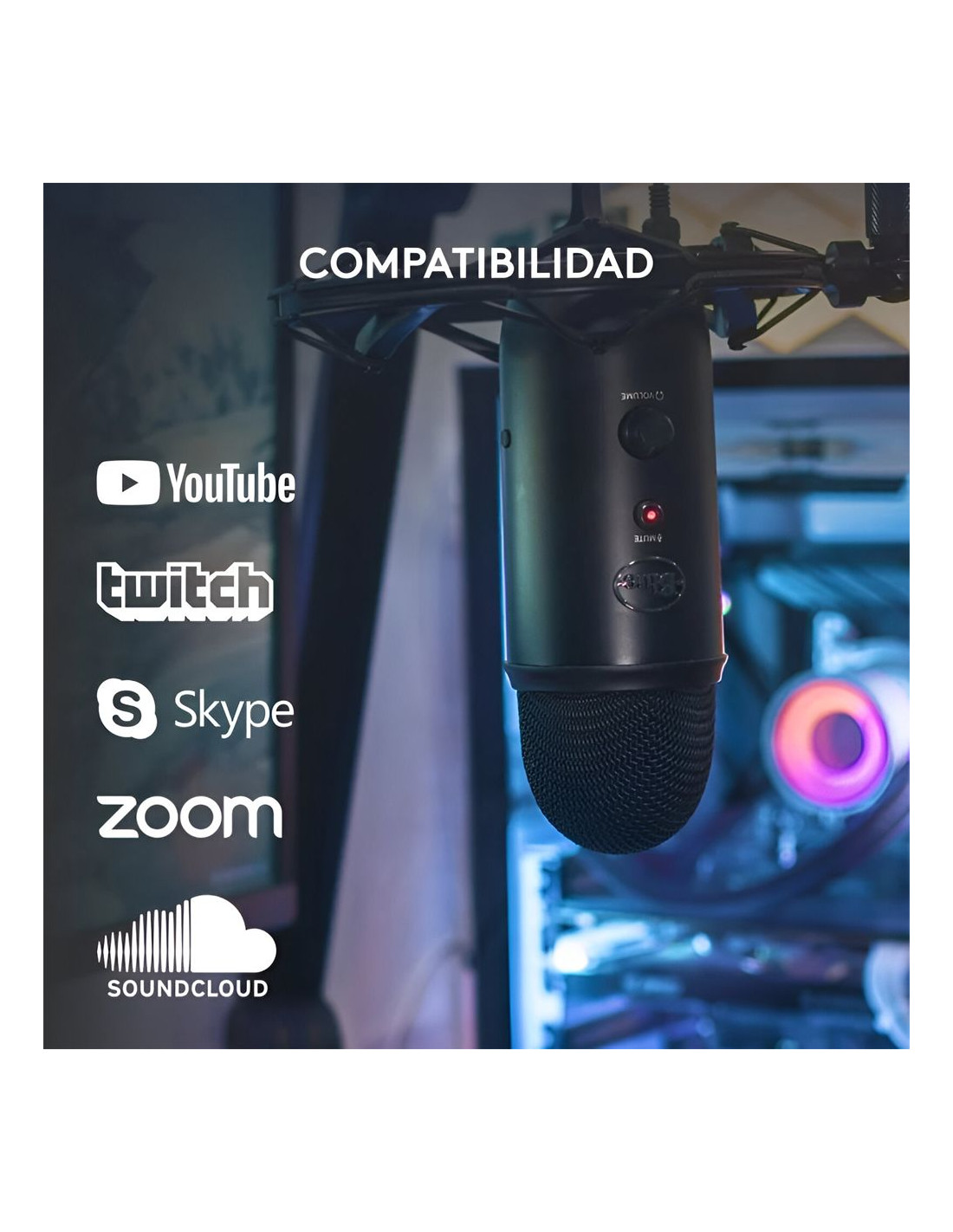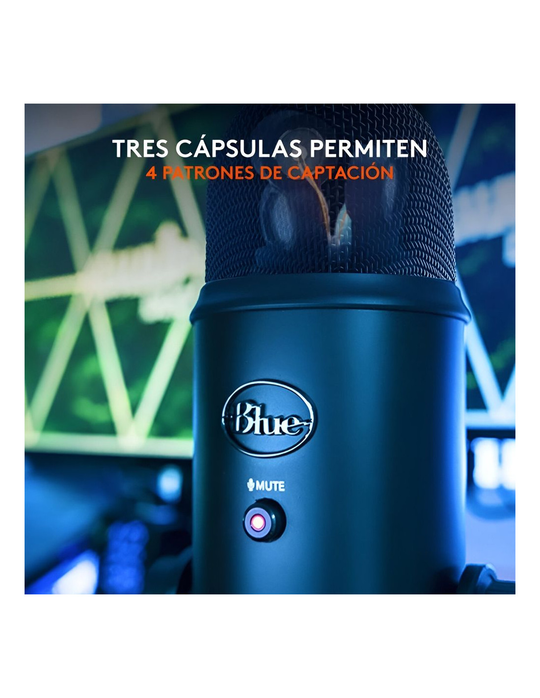 The Blue Yeti Microphone features three custom capsules including a USB mic that delivers clear and powerful sound, ideal for YouTube, Twitch, podcasting, Zoom meetings, and music recording. With Blue VO!CE software, it elevates your broadcasts and recordings with crystal-clear vocal sound and enhanced effects. Four pickup patterns (cardioid, omnidirectional, bidirectional and stereo) allow for versatile recordings. Audio controls adjust volume, patterns, mute and microphone gain, while the adjustable design and Plug'n Play ensure quick and efficient setup with table or boom stand.