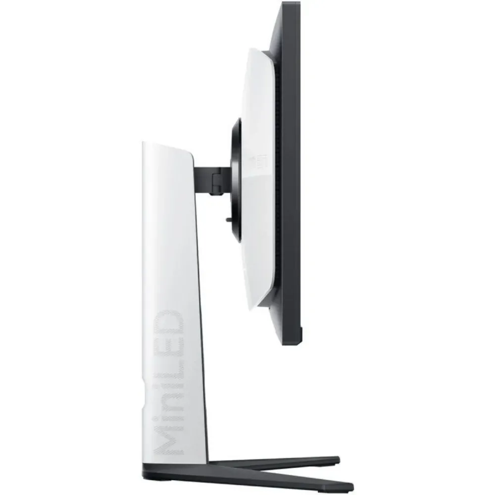 | Feature | Detail | | :--- | :--- | | **Display** | 27-inch IPS LCD, 2K QHD Resolution (2560 x 1440 pixels) | | **Panel Technology** | Mini LED (1152 local dimming zones / 4608 diodes) | | **Refresh & Response** | 180 Hz / 1 ms (GTG) | | **Brightness & Contrast**| 1000 nits (Peak) / DisplayHDR 1000 Certified / 1,000,000:1 Dynamic Contrast | | **Synchronization** | AMD FreeSync Premium | | **Color Accuracy** | 1.07 Billion colors (10-bit) / 100% sRGB / 99% DCI-P3 / 97% Adobe RGB / ΔE < 2 | | **Eye Care** | TÜV Low Blue Light Certified | | **Connectivity** | 2x DisplayPort 1.4, 2x HDMI 2.0, 1x 3.5mm Headphone Jack | | **Stand Ergonomics** | Height adjustable, Tilt (-5° to 21°), Swivel, and Pivot (90° Vertical) | | **Design & Extras** | Rear RGB ambient lighting, Joystick control, VESA 75x75 mm mountable | | **Dimensions / Weight** | 613.3 x 526.5 x 169.4 mm (With stand) / 6.8 kg (15 lbs) |