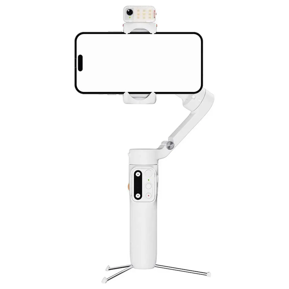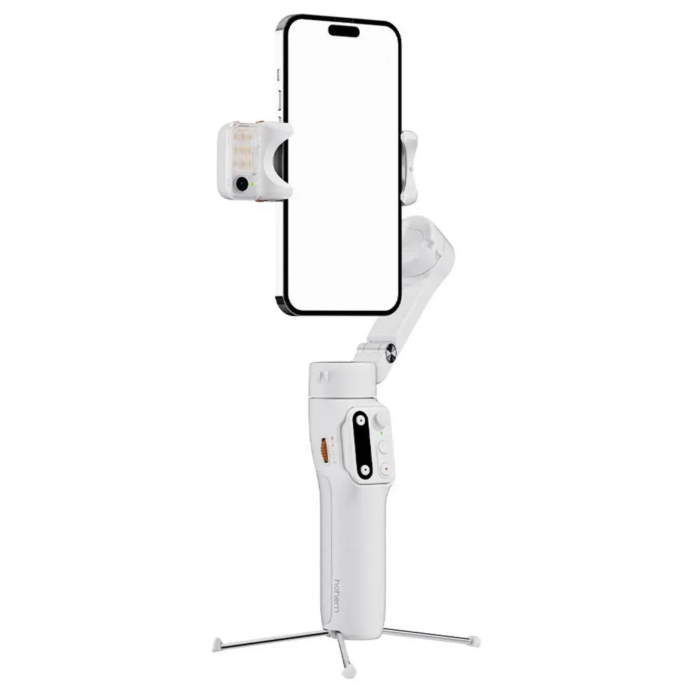 Transform your smartphone into a professional filmmaking rig with the Hohem iSteady V3 White. This 3-axis stabilizer revolutionizes content creation with its magnetic AI Tracker that automatically follows you without the need for any app, perfect for TikTok, live streaming, and meetings. Its versatile all-in-one design features a built-in tripod and 205mm extension rod, along with an innovative detachable remote control for distance operation. Light up your shots with the adjustable 3-color fill light and enjoy buttery smooth footage powered by the iSteady 8.0 stabilization system. Foldable, lightweight, and boasting 13 hours of battery life, it is the ultimate tool for creators on the go.