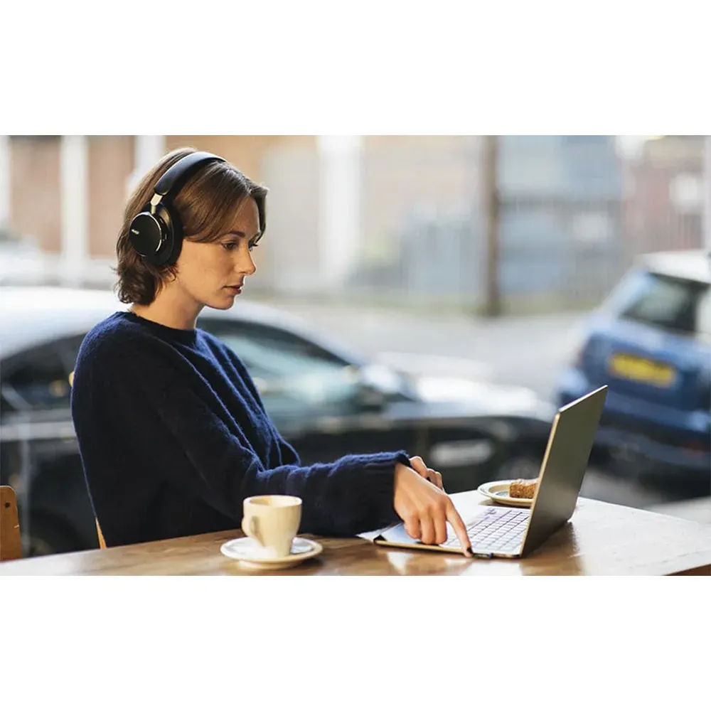 Your voice, always clear. The AKG N9 Hybrid is Zoom Certified thanks to its 4 adaptive beamforming mics and a windproof design. AI machine learning suppresses background noise so you are heard with crystal clarity, even outdoors or in noisy offices.