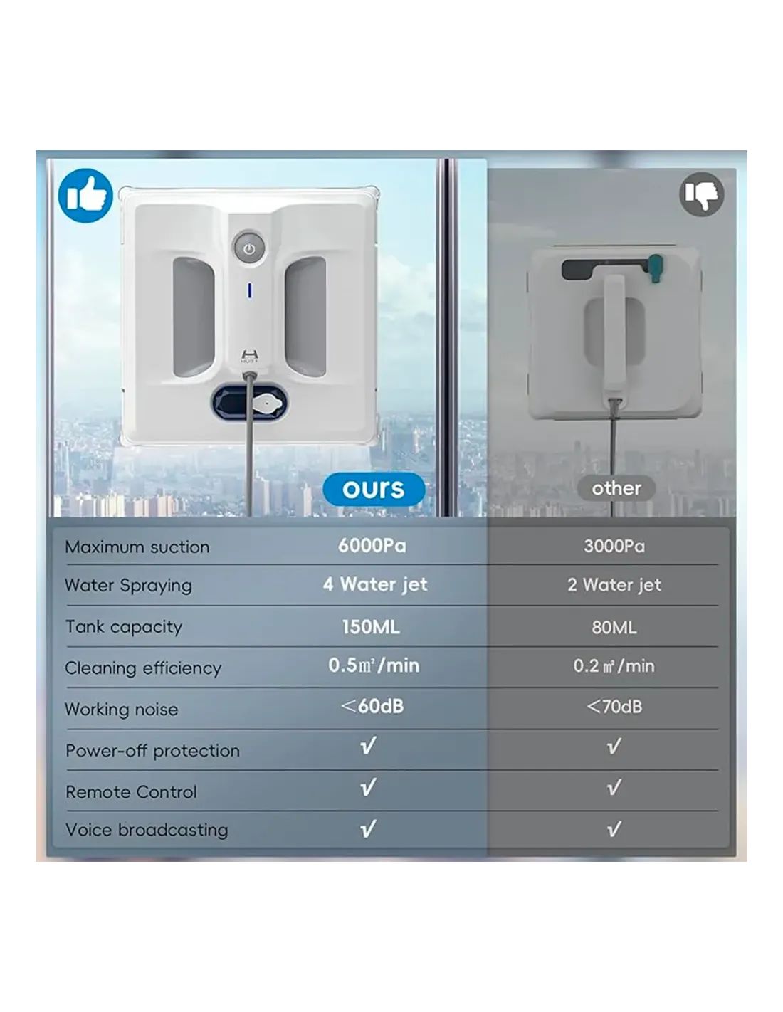 Discover the HUTT C7 Window Cleaning Robot, the smart solution for effortless window cleaning. Its dual-disc design with 3D suspension and 5500Pa suction power removes even the toughest dirt, while its pressurized water spray system ensures a streak-free finish. With 13 safety sensors, fast cleaning and adaptable to glass, marble or wood, the HUTT C7 is...