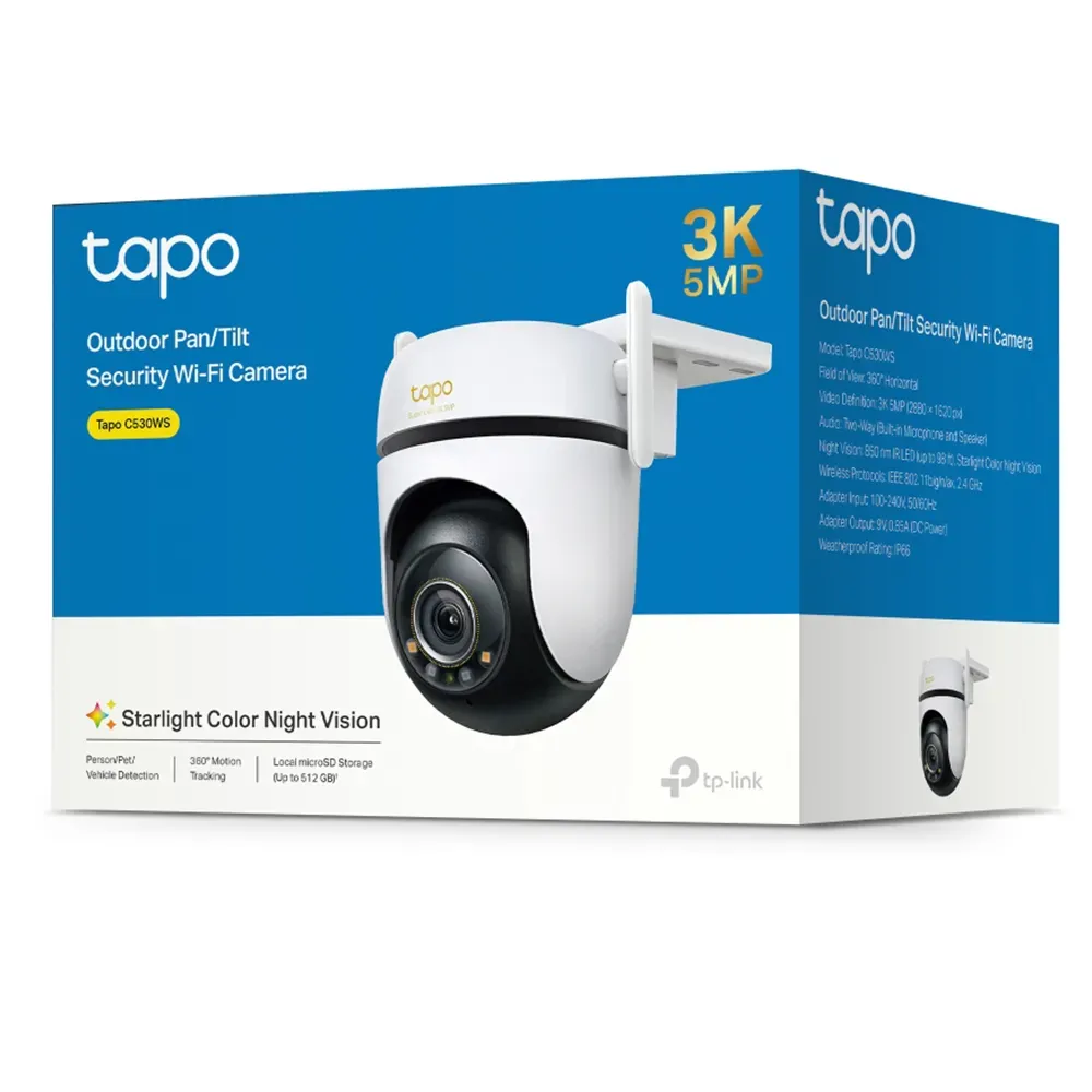 Maximize your property's security with the Tapo C530WS, the outdoor camera that sees it all in stunning 3K 5MP resolution (2880 x 1620). Capture sharper details and clearer footage than standard 2K cameras. Eliminate blind spots with 360° visual coverage and smart motion tracking. The advanced Starlight sensor provides vivid Full-Color Night Vision even in ultra-low light. Featuring free AI detection for people, pets, and vehicles, IP66 weatherproofing, and dual antennas for long-range Wi-Fi, this camera offers robust, proactive protection around the clock.