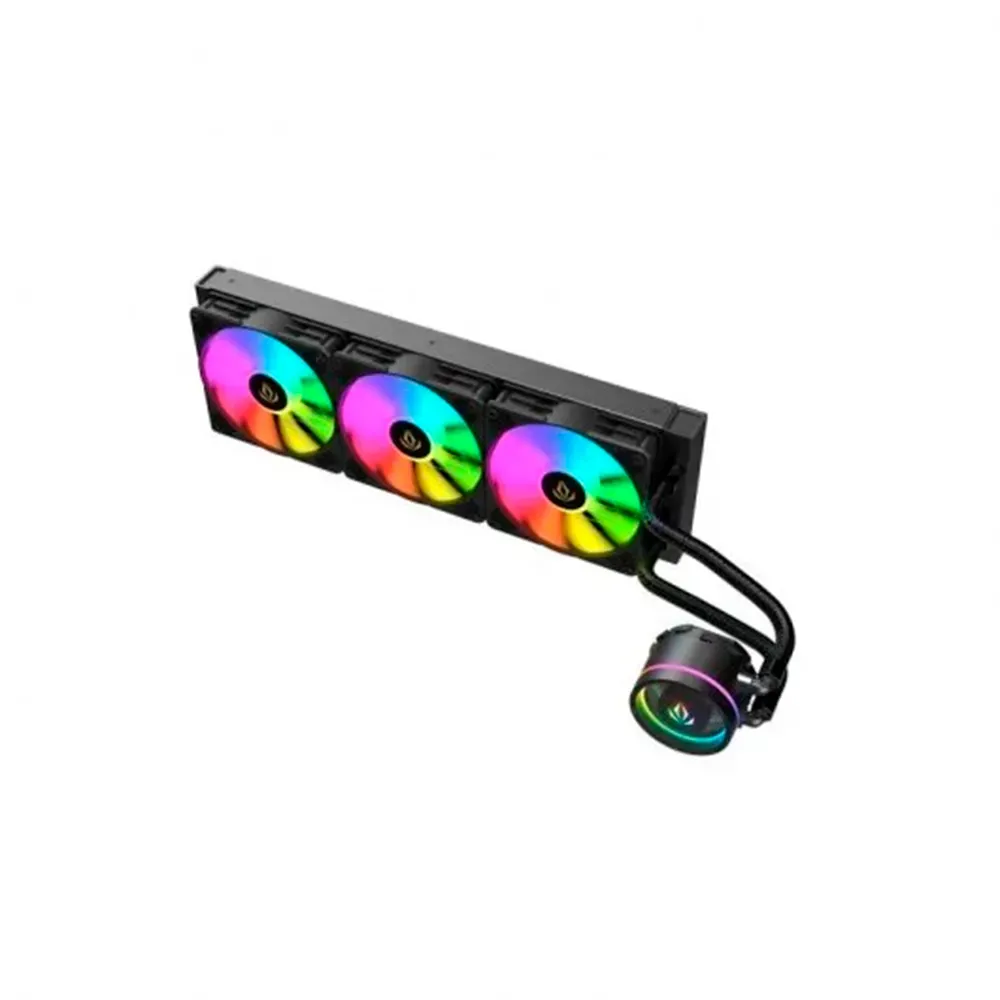 Elevate your PC to extreme performance with the Forgeon Azoth 360 ARGB, the ultimate liquid cooling kit. Designed to tame heat, it offers 360W thermal dissipation power (TDP), ideal for the most demanding CPUs. Its three 120mm PWM fans and 3200 RPM pump ensure superior cooling, while the copper plate maximizes heat transfer. Enjoy full customization with ARGB lighting on the fans and a spectacular infinity effect on the pump, adjustable in 12 positions. Installation is quick and tool-less, compatible with the latest Intel (LGA 1700) and AMD (AM5) sockets. The Azoth 360 is the perfect solution that combines power, aesthetics and easy assembly.