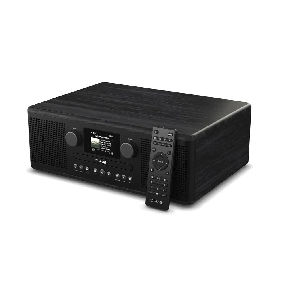 Rediscover your music with the Pure Classic C-D6i Black/Ash, the ultimate audio system that does it all. This stylish "All-in-One" device combines a high-fidelity CD player with modern streaming power: Internet Radio (WiFi), Spotify Connect, and Bluetooth 5.3. Enjoy immersive 30W stereo sound thanks to its dual full-range speakers. Tune into global stations, listen to podcasts, or play files from USB. With its 2.4" color screen, remote control, and premium black wood finish, it is the perfect centerpiece for any modern home.