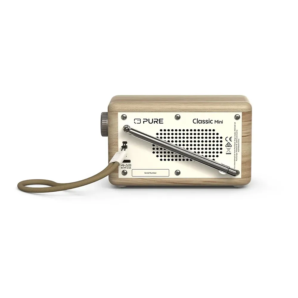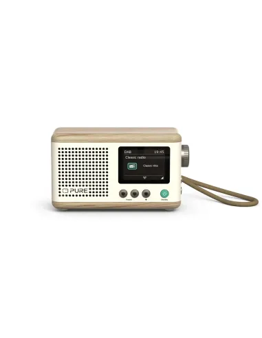 Brighten your day with the Pure Classic Mini Cotton White/Oak, the portable digital radio that defines modern style. Its crisp white finish with oak accents brings freshness to any room. Tune into your favorite stations with crystal-clear DAB+ and FM quality, or connect your phone via Bluetooth 5.3 to stream playlists. Compact yet powerful, it delivers rich, detailed 5W sound. With an intuitive 2.4" color display and a rechargeable 15-hour battery, it's perfect for the kitchen, bedroom, or park. Music with style and freedom!