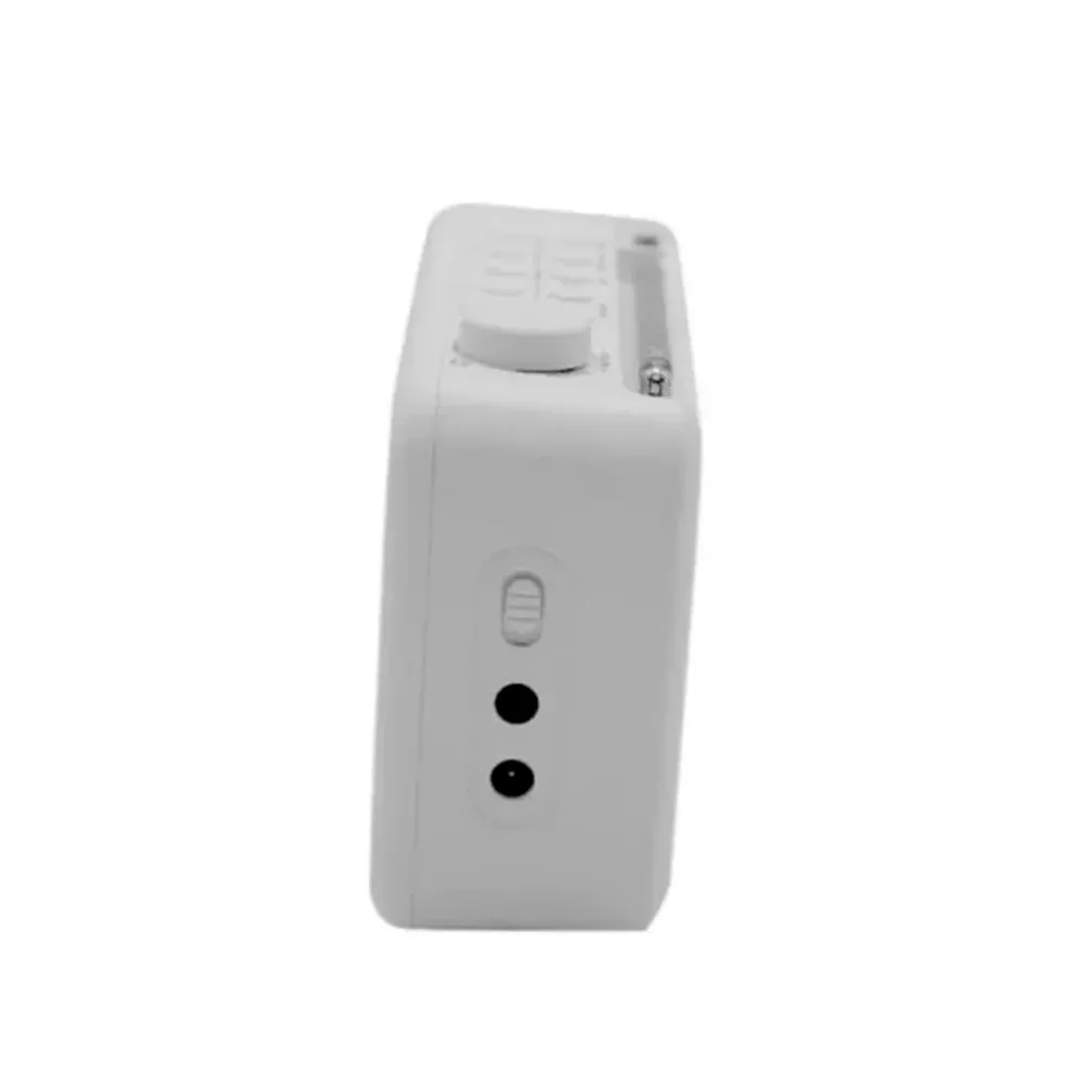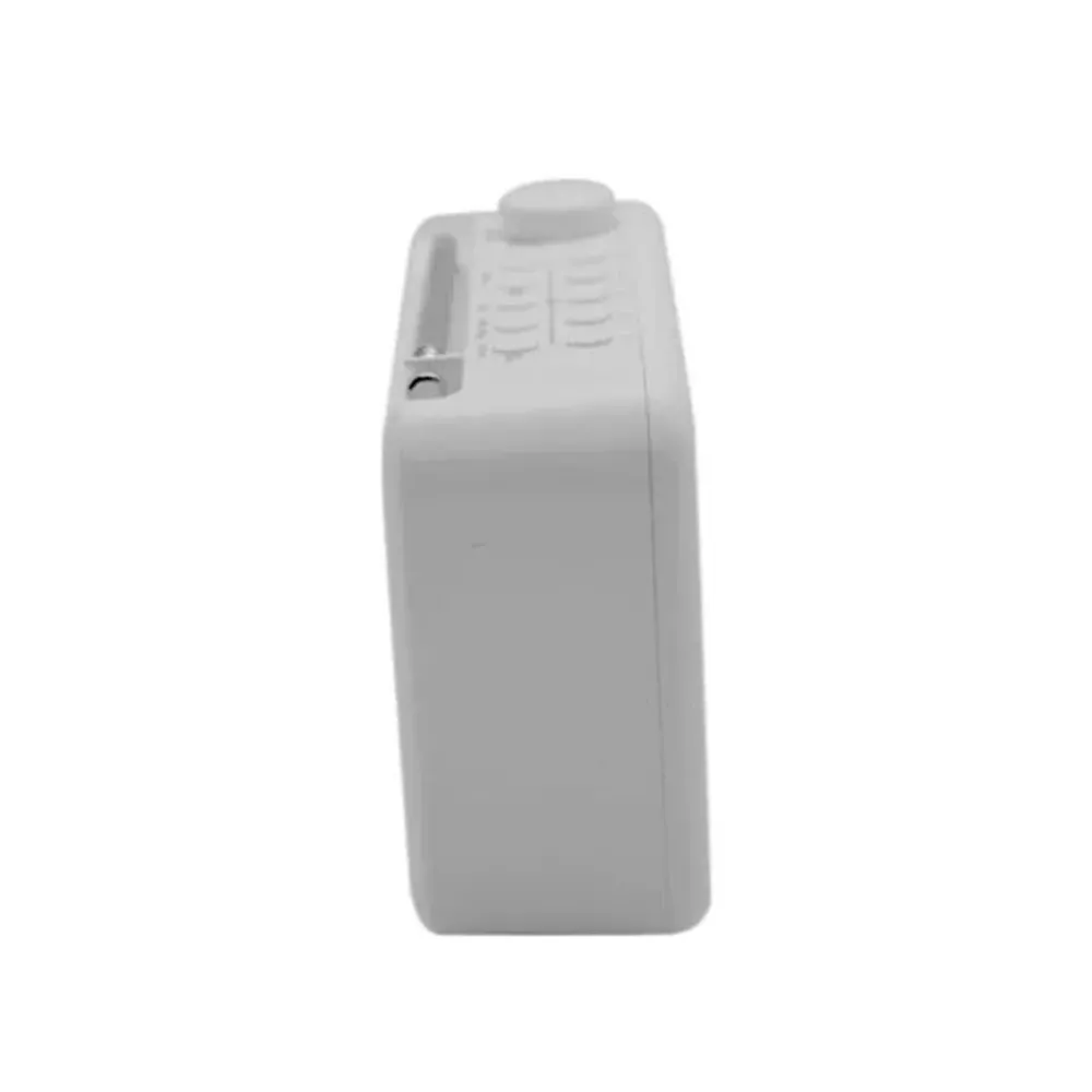 La **Elan One2 Blanco** fue creada pensando en la máxima portabilidad. Sus dimensiones compactas (53 x 160 x 110 mm) y su bajo peso (350 g) facilitan su transporte. Su capacidad de **alimentación híbrida** (corriente AC o 4 pilas AA) junto con la antena externa robusta, la convierten en la herramienta perfecta para jornadas en exteriores, lugares de trabajo sin acceso fácil a enchufes, talleres o laboratorios. El temporizador de apagado y la función snooze complementan una experiencia diaria optimizada y eficiente.