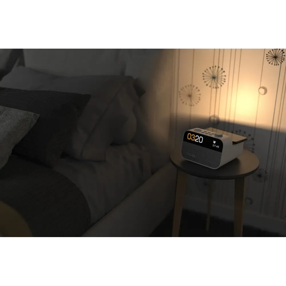 Transforma tu dormitorio en un santuario de descanso y eficiencia con Moment Charge Blanco Algodón. Este elegante despertador con altavoz Bluetooth 5.3 ofrece un **sonido envolvente de 10W** ideal para la relajación, potenciado por más de 20 sonidos naturales y ruido blanco que garantizan un sueño reparador. Despídete de los cables: incorpora una cómoda carga inalámbrica Qi y puertos USB adicionales. Su luz de amanecer regulable simula un despertar natural y su diseño minimalista promueve la mejor higiene del sueño. ¡Consigue el mejor despertador con cargador inalámbrico para una vida sin interrupciones!