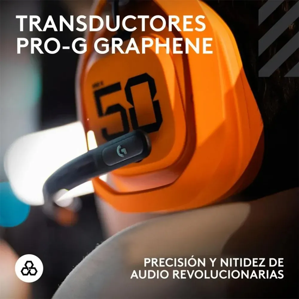 Domina la pista y el campo de batalla con los Logitech G Astro A50 X Edición McLaren. Esta colaboración exclusiva luce el icónico color papaya y ofrece un rendimiento de élite. Gracias a la revolucionaria tecnología PLAYSYNC, conecta simultáneamente tu Xbox Series X|S, PS5 y PC y cambia entre ellas con un solo clic, sin reconectar cables. Experimenta una claridad de audio sin precedentes con los transductores de GRAFENO PRO-G de 40 mm y disfruta de gráficos 4K a 120 Hz gracias a su estación base con paso de HDMI 2.1. Con tecnología inalámbrica LIGHTSPEED de grado profesional, micrófono de alta resolución y 24 horas de batería, estos auriculares son la herramienta definitiva para el gamer que lo quiere todo.