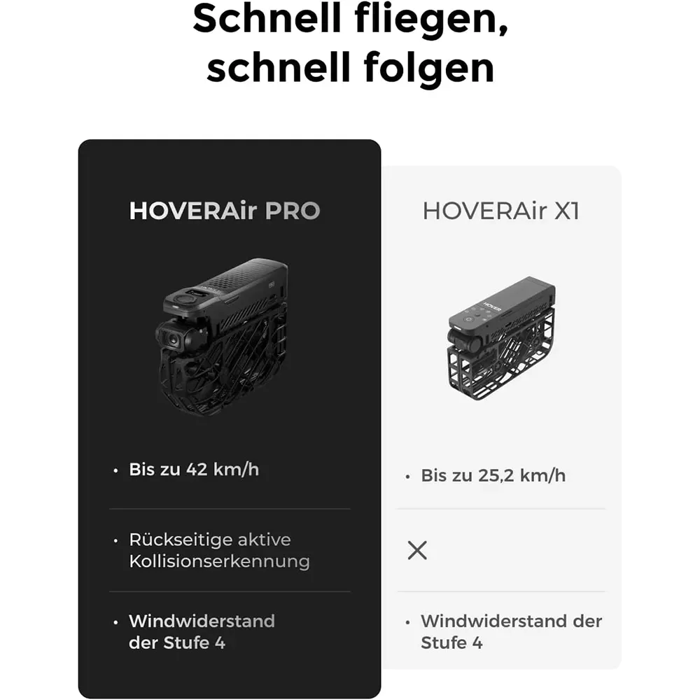 – Detección trasera de colisión (sensor ToF): frenado automático ante obstáculos al vuelo, mayor seguridad en seguimiento a alta velocidad.