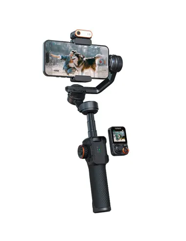 El Hohem iSteady M7 redefine la experiencia de grabación con su revolucionario control remoto desmontable. Incorpora una pantalla táctil a color de 1.4 pulgadas que te permite ver la transmisión de vídeo en tiempo real, ajustar parámetros y seleccionar el sujeto a rastrear mediante un simple toque o arrastre. Opera tu gimbal a una distancia de hasta 10 metros, perfecto para grabaciones en solitario o ángulos creativos.