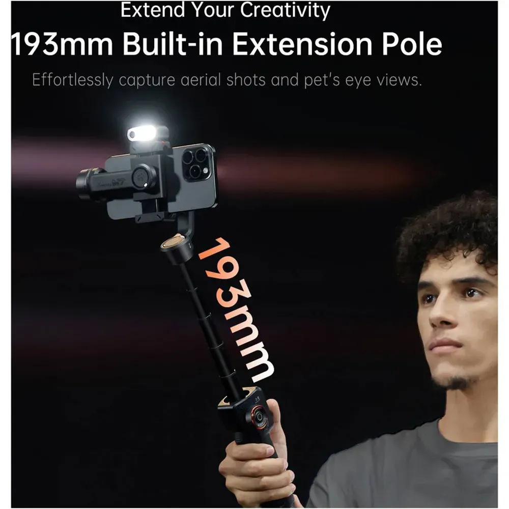 Olvídate de los problemas de equilibrio con móviles grandes. El M7 es una bestia de carga, soportando hasta 500 gramos. Esto lo hace totalmente compatible con los smartphones más pesados del mercado, como el iPhone 16 Pro Max, Samsung S24 Ultra e incluso teléfonos plegables, permitiéndote además añadir lentes externas o micrófonos sin comprometer la estabilidad.