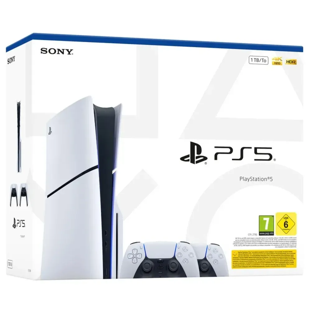 Experimenta la próxima generación de juego con la Sony PlayStation 5 Slim Standard (Chasis E), rediseñada para ser más elegante y compacta sin sacrificar ni un ápice de potencia. Este pack exclusivo incluye 2 mandos inalámbricos DualSense, ideal para disfrutar del multijugador local desde el primer momento. Equipada con un SSD de 1TB de ultra alta velocidad, elimina los tiempos de carga casi por completo, mientras que la tecnología de Ray Tracing y la resolución 4K a 120 fps ofrecen gráficos de un realismo asombroso. Siente cada acción con la retroalimentación háptica y los gatillos adaptativos, y sumérgete en el sonido envolvente Tempest 3D. Es la oportunidad perfecta para actualizar tu setup con la versión más eficiente y completa de PS5.