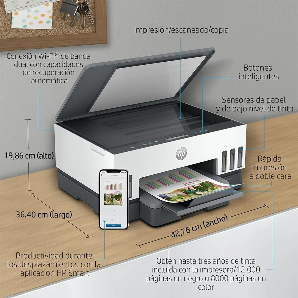 Olvídate de los costosos cartuchos y revoluciona tu forma de imprimir con la HP Smart Tank 7005. Esta impresora multifunción inalámbrica cuenta con un sistema de depósitos de tinta recargables que te permite ahorrar dinero desde el primer día. Viene equipada con tinta original HP suficiente para imprimir hasta 12.000 páginas en negro u 8.000 en color, equivalente a casi 3 años de impresión. Aumenta tu productividad con la impresión automática a doble cara, conectividad Wi-Fi de banda dual autorreparable y la mejor gestión móvil a través de la HP Smart App. Es la solución perfecta, ecológica y económica para familias y oficinas en casa que buscan calidad y volumen sin interrupciones.