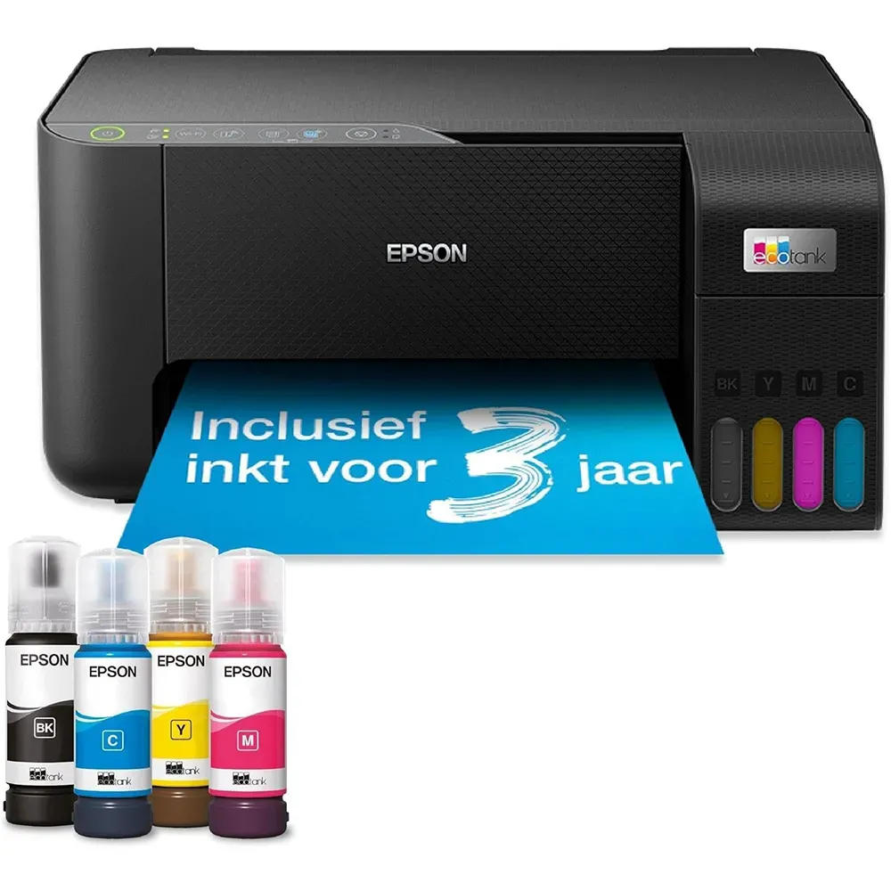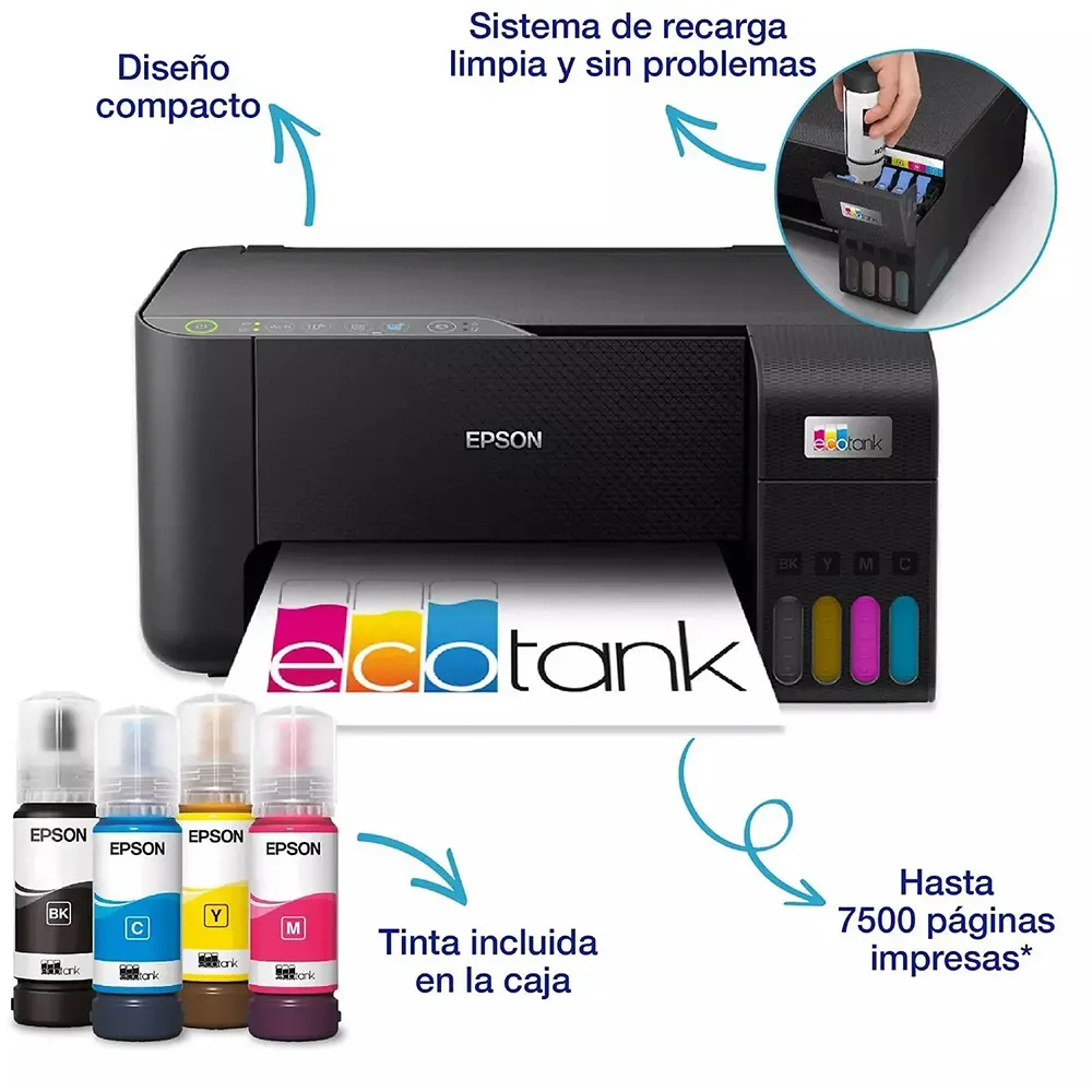 Olvídate de los cartuchos para siempre y empieza a ahorrar a lo grande con la Epson EcoTank ET-2865. Esta impresora multifunción 3 en 1 reduce los costes de impresión hasta un 90% gracias a sus depósitos de tinta rellenables de ultra alta capacidad. La caja incluye tinta suficiente para imprimir hasta 3 años (4500 páginas en negro y 7500 en color), liberándote del estrés de quedarte sin suministros. Disfruta de la libertad de imprimir desde cualquier lugar con su conectividad Wi-Fi y la app Epson Smart Panel. Con tecnología sin calor Micro Piezo, es la solución compacta, ecológica y económica perfecta para tu hogar u oficina.