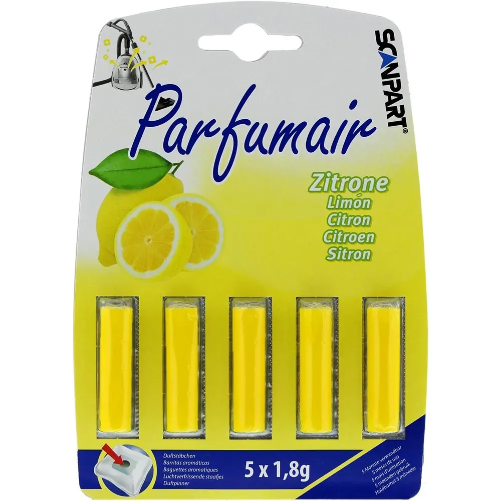 Di adiós al olor a polvo y refresca tu hogar mientras limpias con las Varillas Ambientadoras Scanpart con fragancia a Limón. Este pack incluye 5 sticks perfumados universales, compatibles con cualquier marca de aspiradora (con o sin bolsa). Simplemente introduce una barrita en el depósito o bolsa y disfruta de un aire limpio con un toque cítrico revitalizante cada vez que pases la aspiradora.