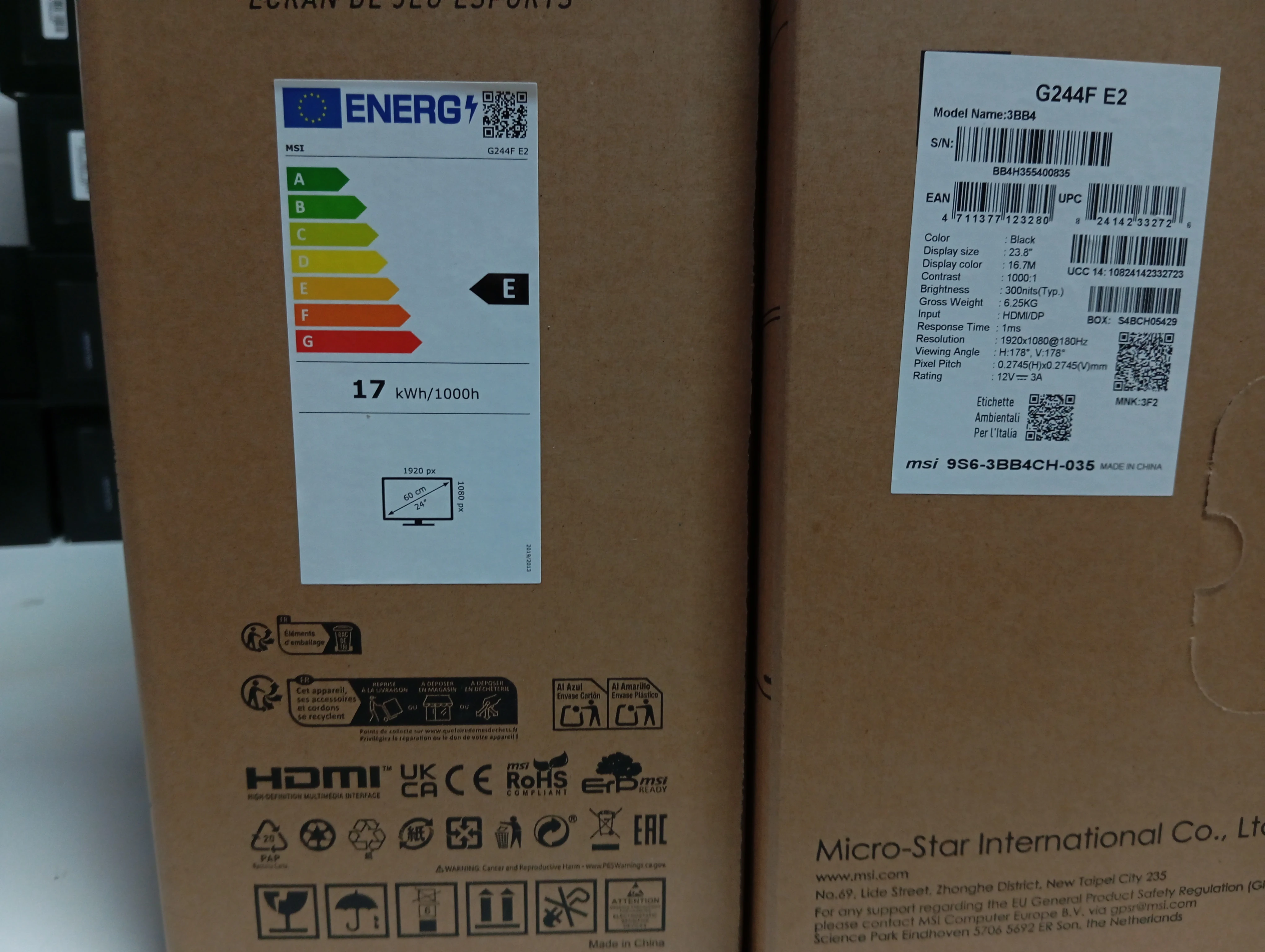 Visualiza tu victoria con el MSI G244F E2. Este monitor de 23.8" FHD está equipado con un panel Rapid IPS que ofrece una velocidad de 180 Hz y un tiempo de respuesta de 1 ms (GtG). Disfruta de colores vibrantes (122% sRGB), tecnología Adaptive Sync y funciones exclusivas para Esports como Night Vision.