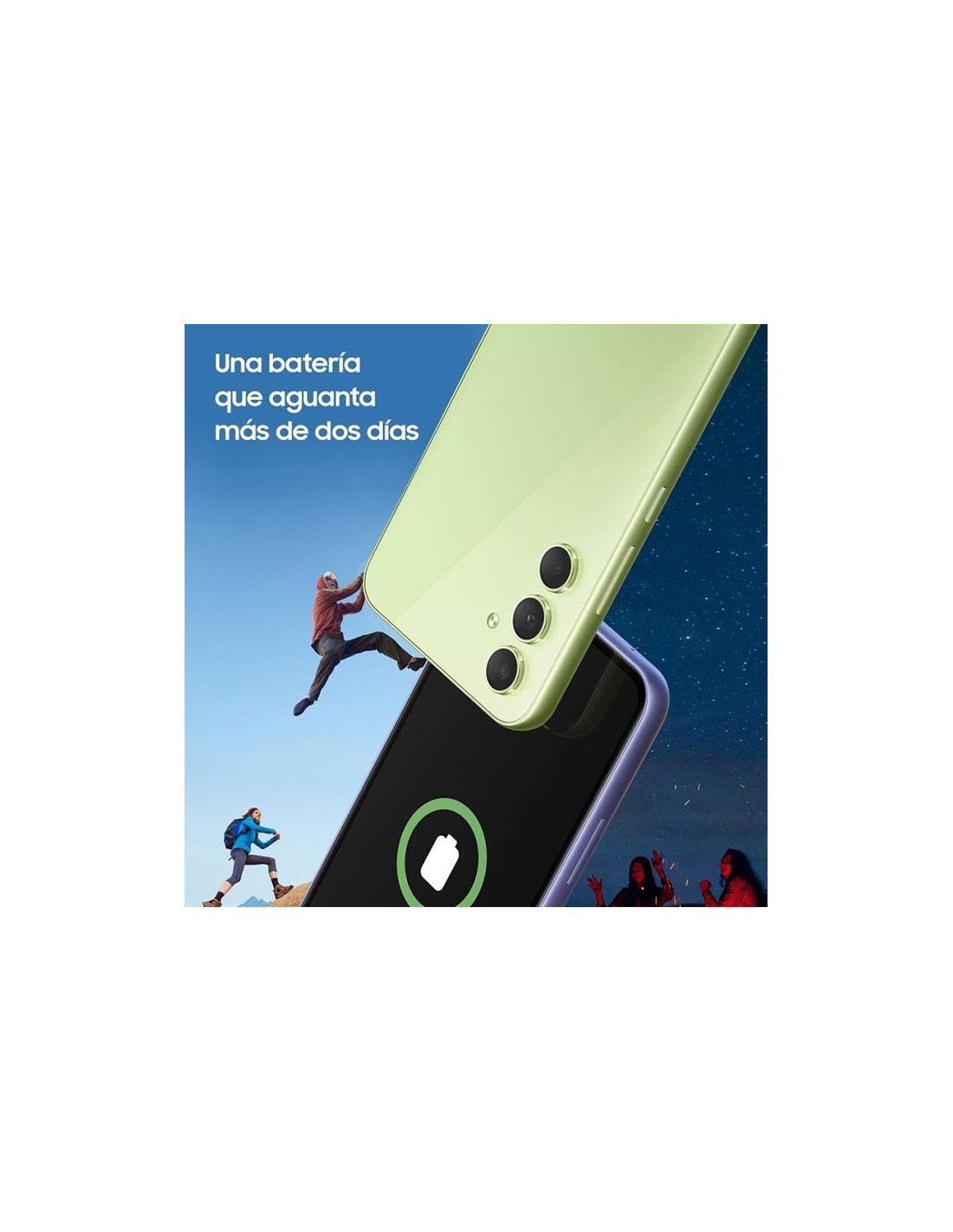¿Te imaginas pasar un fin de semana sin preocuparte por cargar tu smartphone? ¡Es posible con el Galaxy A54 5G! Gracias a su batería de gran capacidad, funciones de ahorro de energía y componentes más eficientes, este smartphone te ofrece hasta 2 días de autonomía. Con una batería de 5.000 mAh, Galaxy A54 5G tiene una de las mayores capacidades en su categoría. Pero si necesitas recargar rápidamente, su carga rápida de 25 W te permite recuperar el 50% de la batería en solo minutos. Olvídate de estar siempre buscando un enchufe y disfruta al máximo de tus contenidos.