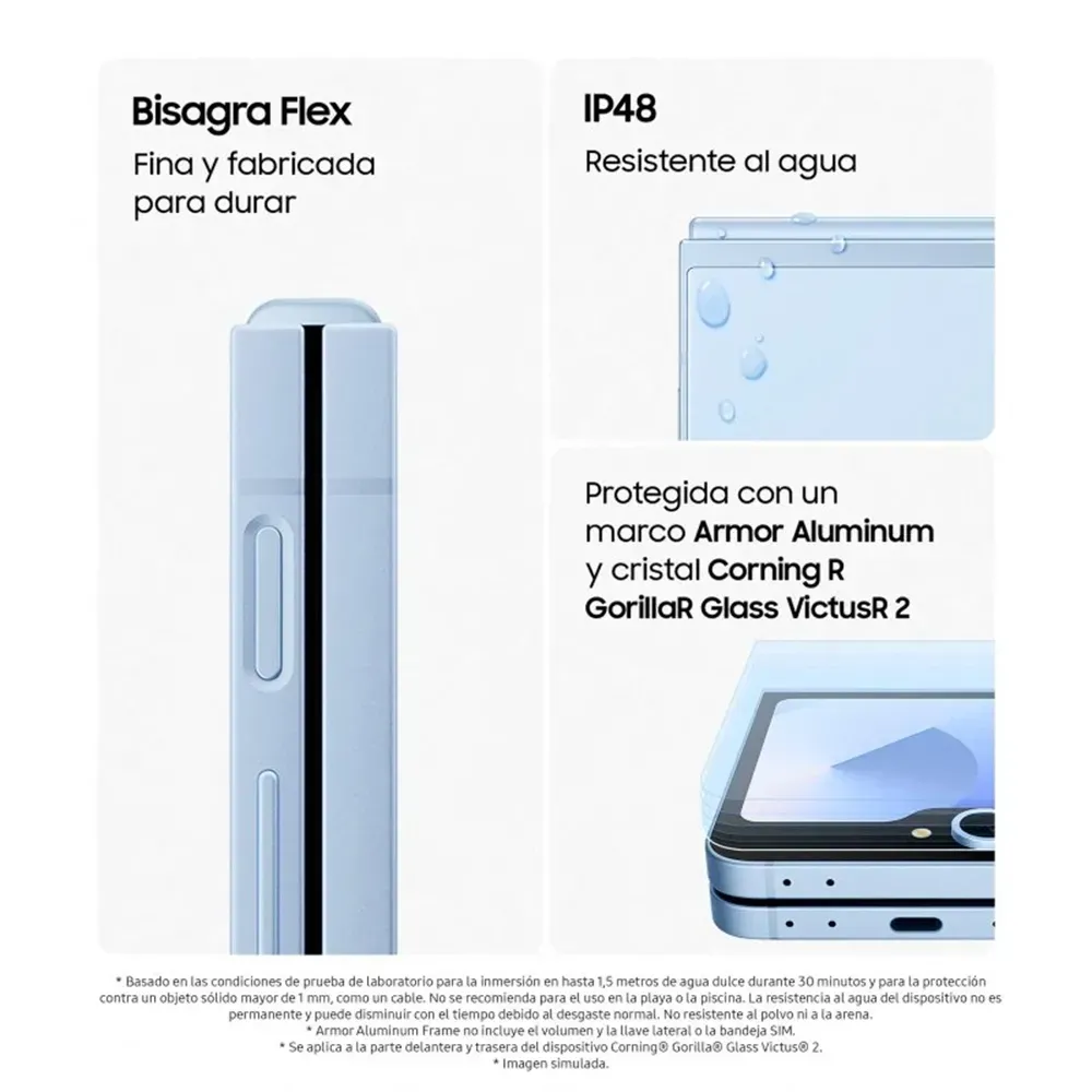 La durabilidad está garantizada con la bisagra FlexHinge reforzada, el marco de Armor Aluminum y el cristal Corning Gorilla Glass Victus 2. Con certificación IP48, es resistente al agua y al polvo. Además, su batería optimizada de 4000 mAh te ofrece hasta 23 horas de reproducción de vídeo y 68 horas de música, manteniéndote conectado desde el amanecer hasta el anochecer.