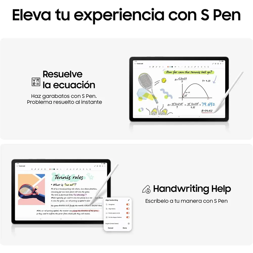 Revoluciona tu forma de estudiar y crear con la Samsung Galaxy Tab S10 Lite. Esta tablet de 10.9 pulgadas y tasa de refresco de 90 Hz te ofrece una fluidez visual incomparable. Impulsada por Galaxy AI, simplifica tareas complejas: resuelve fórmulas matemáticas al instante con Solve Math, elimina objetos de tus fotos mágicamente y obtén respuestas en tiempo real con una sola pulsación. Incluye el icónico S Pen para escribir y dibujar con precisión milimétrica. Con 8 GB de RAM, 256 GB de almacenamiento y una potente batería de 8.000 mAh, es la herramienta definitiva para la productividad sin límites.