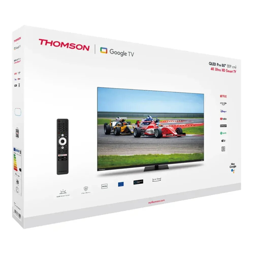 PAGOSi buscas una calidad de imagen profesional y una fluidez extrema en un formato de gran tamaño (139 cm de diagonal), el Thomson 55QG7C14 es tu elección ideal. Diseñado con una elegante estética sin apenas bordes y acabado en color negro, este televisor se convertirá en el centro de todas las miradas en tu salón.