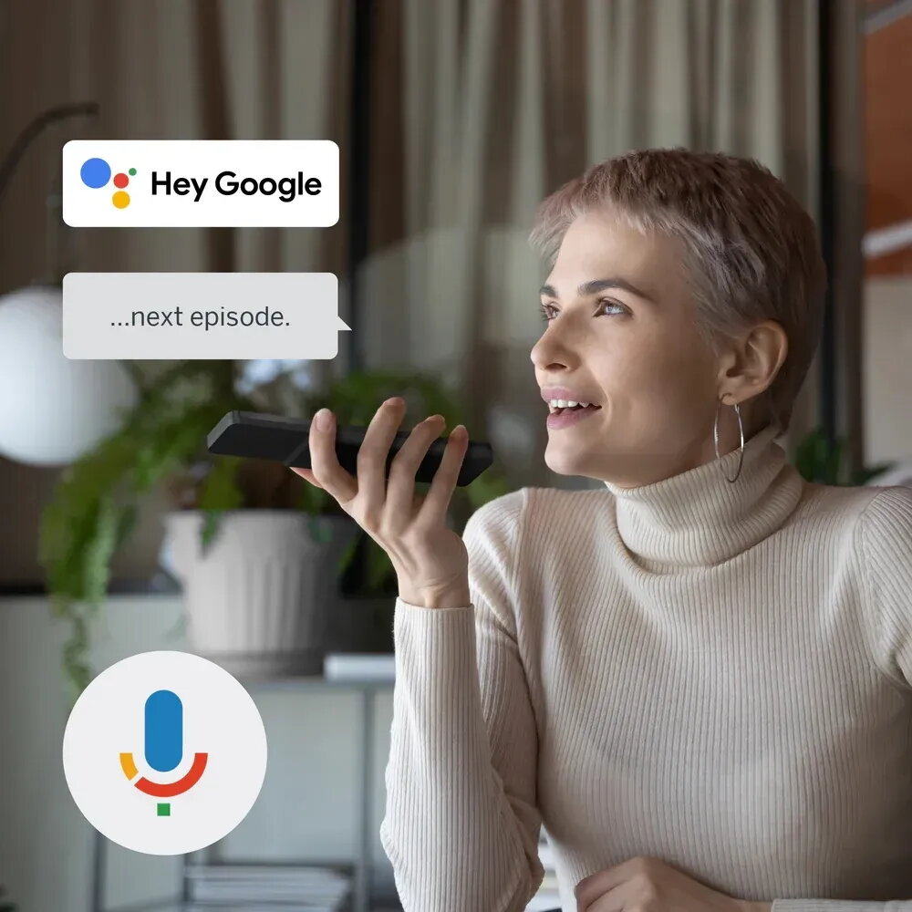 El sistema operativo Google TV simplifica tu vida organizando tus plataformas favoritas (Netflix, Prime Video, Disney+) en una sola pantalla con perfiles personalizados. Utiliza el micrófono integrado en su mando a distancia retroiluminado para pedirle al Asistente de Google que busque el último estreno o controle el volumen mediante tu voz.